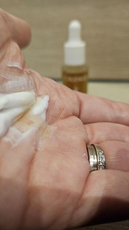 Parfaite laisse votre peau du visage souple pas grasse très agréable sensation .utilisée depuis des années et toujours aucune ride autour des yeux de la bouche ,de tache sur mon visage (61ans)