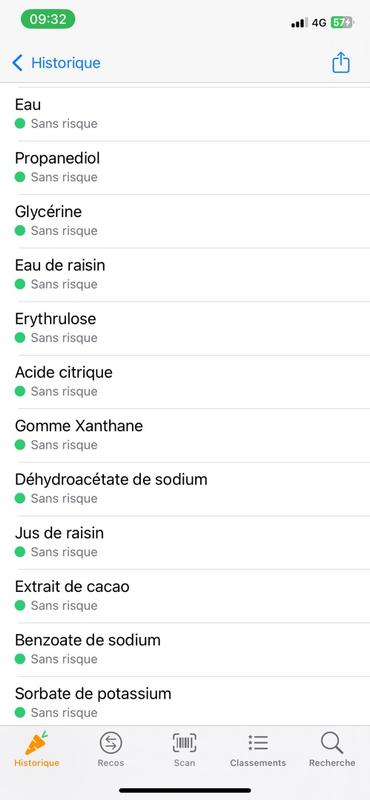 Liste complète d'ingrédients :